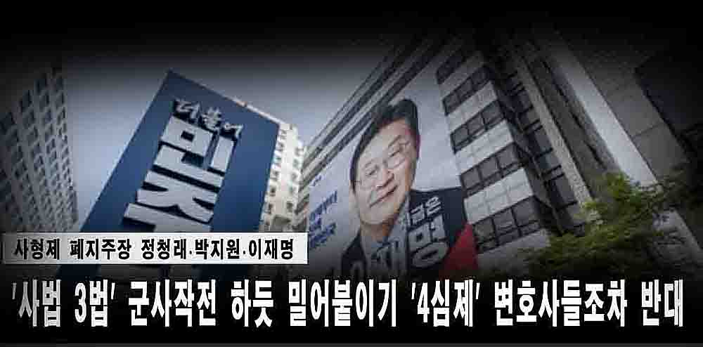 '사법 3법' 군사작전 하듯 밀어붙이기 '4심제' … 법조계, 우려 변호사들조차 반대 |